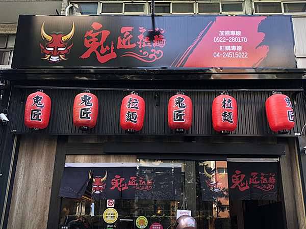 來自宜蘭的好味道-鬼匠拉麵店面採用黑紅對比設計,顯眼的招牌絕對不擔心會錯過啦~